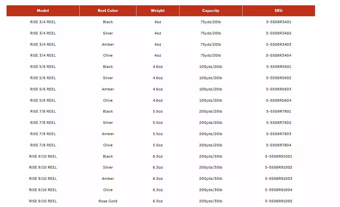 | Reel Size | 3/4wt, 5/6wt, 7/8wt, 9/10wt |