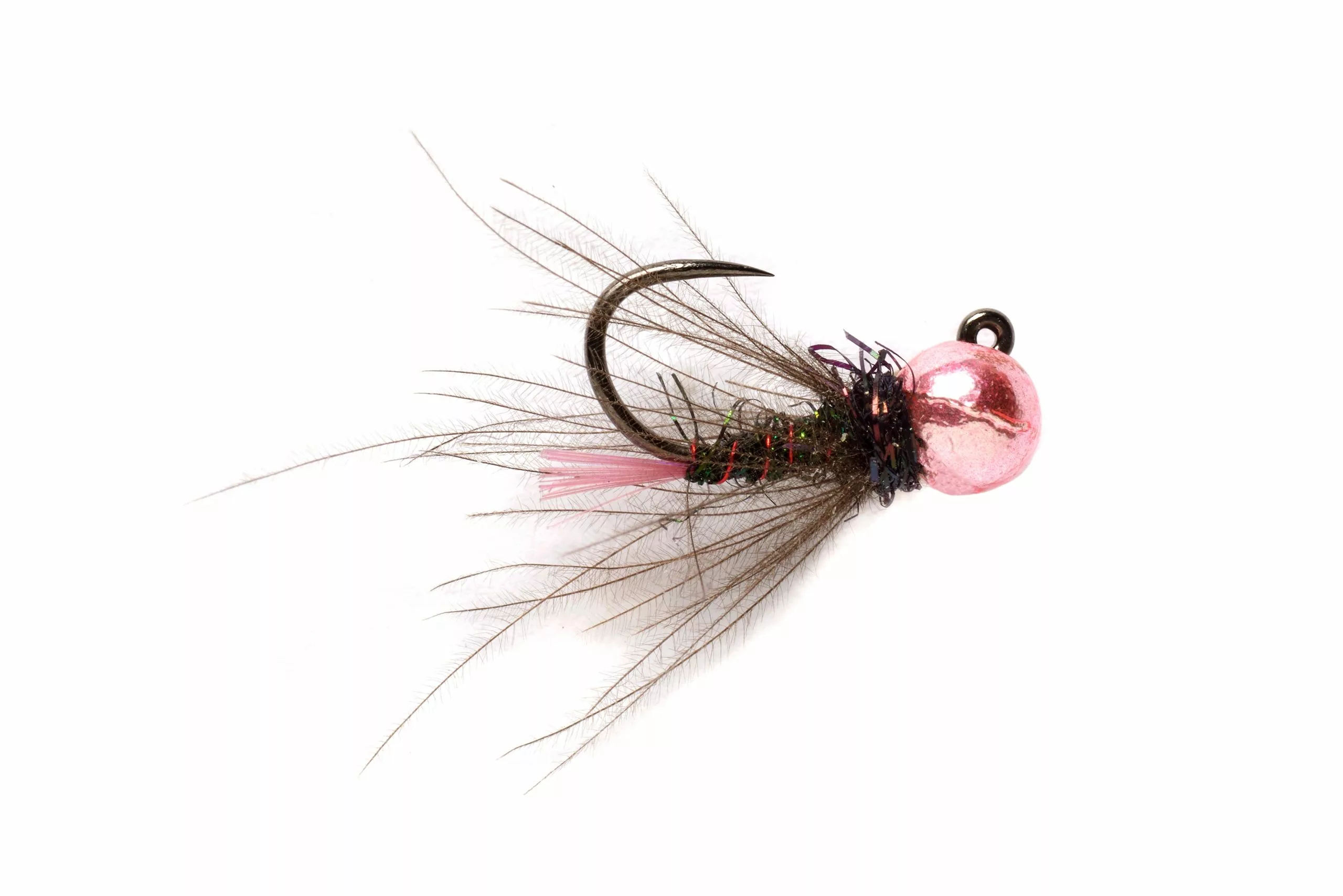 “A super fly to use in cold waters. Violet tailed flies work so well and in this dark colouration this fly is highly effective in spring and autumn. The body is constructed with peacock spectra dubbing with a subtle red ribbing combined with a pink bead. This makes a highly effective fly.”- Lubos Roza